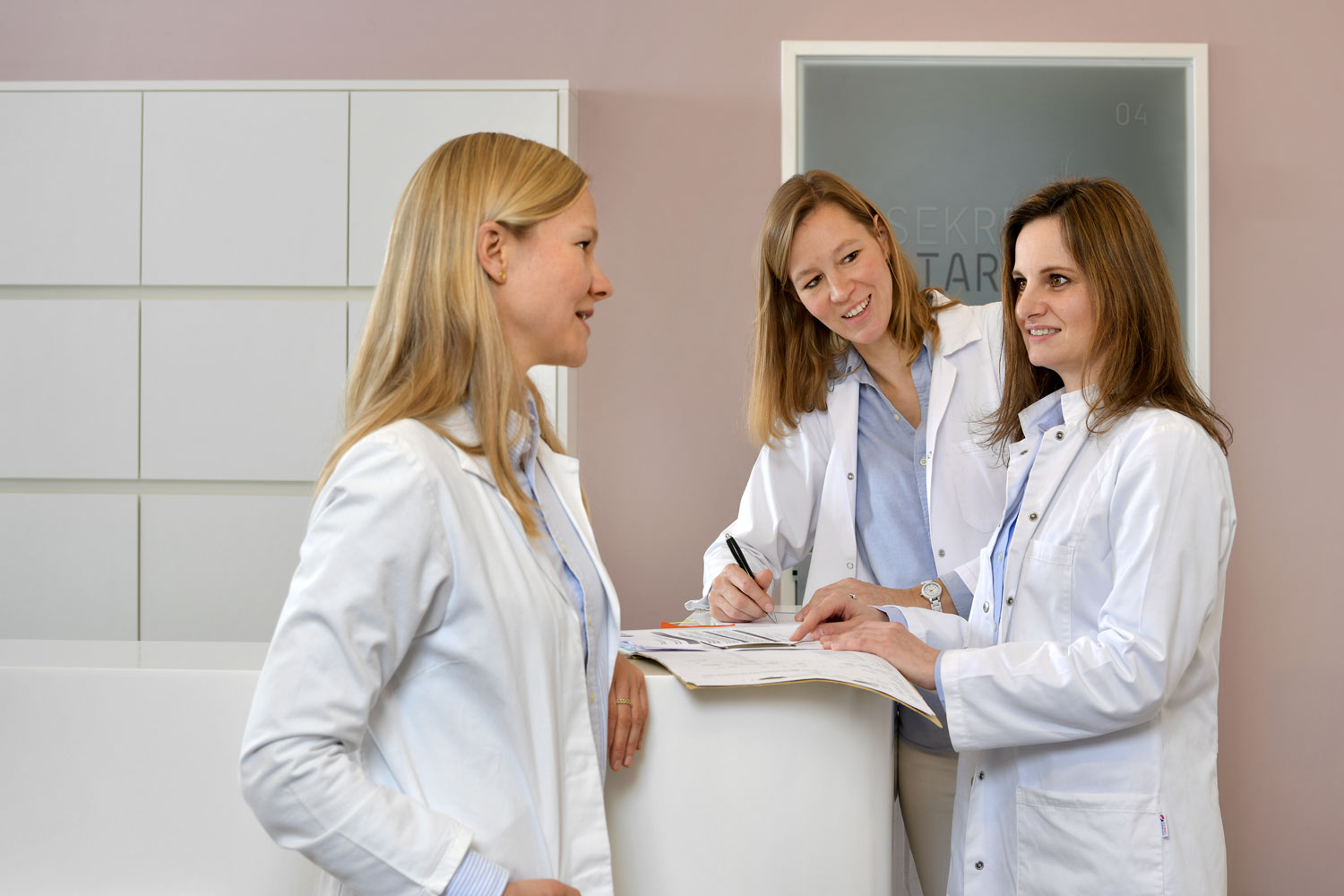 Deshalb sehen wir uns Befunde der bereits durchgeführten Hormonuntersuchungen bei einem Erstgespräch sehr aufmerksam an und ergänzen die Befunde durch Hormonuntersuchungen in unserem eigenen Hormonlabor. Die wichtigste Untersuchung findet wenige Tage nach Einsetzen der Periodenblutung statt: Hier bestimmen wir die Hormone, die den Zyklus steuern, überprüfen die Schilddrüsenfunktion, messen die männlichen Hormone im weiblichen Organismus und bestimmen Marker für die Eierstocksreserve, die altersbedingt schwächer werden kann.